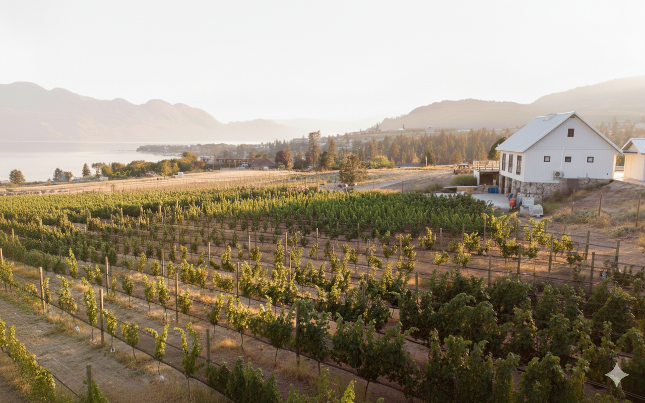 The Gallery Vineyard is located in the heart of West Kelowna, situated between the city centre and Lake Okanagan, overlooking Gellatly Bay. While being in the hub of the city’s town centre, the 25 acres feels removed from the busy-ness, a little island of farmland lovingly tended and cared for by its owners.